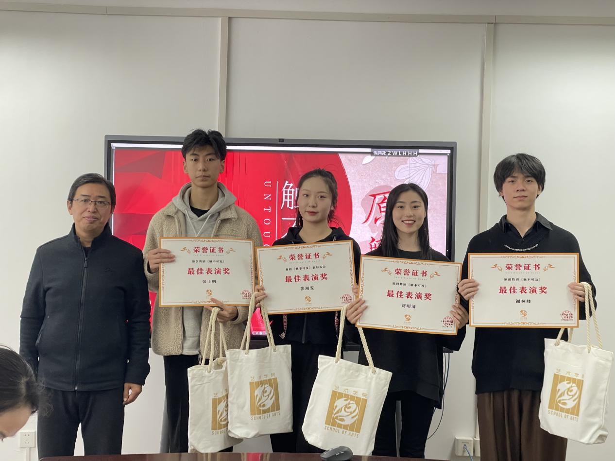 2022年12月7日下午4时,在402永利集团会议室举行了原创沉浸式舞剧《触不可及》表彰会。该舞剧是上海市文广SMG主办的“超沉浸制造局”艺术节入围邀约作品,也是国内首批国标舞沉浸式舞剧作品。作品在402永利集团郑小凡老师的带领下,全体剧组演职人员、402永利集团师生的共同努力下,经历了导演组前期一年的积累创作,和最终的紧张排练以及对重重困难的克服攻坚,最终圆满呈现。也在国标舞体育舞蹈学科的创作发展中,开创了具有引领性、前瞻性、突破性的意义。本次表彰会我们邀请到402永利集团副经理韩春英教授,402永利集团书记刘勇,舞蹈教师郑小凡、402永利集团辅导员王长伟老师、主持人杨帆老师以及四位演员和八位校内场务工作人员。