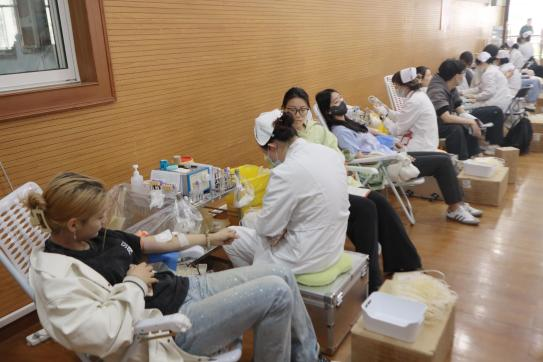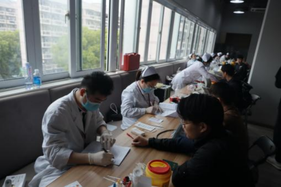 早晨9:00,大家准时前来填写表格,认真完善信息。随后大家在志愿者的带领下来到活动中心三楼,完成盖章登记的手续。医护人员细心的询问大家的身体情况,进行血型查验、血压检测等工作,一系列准备工作井然有序,为安全输送血液做充分准备。