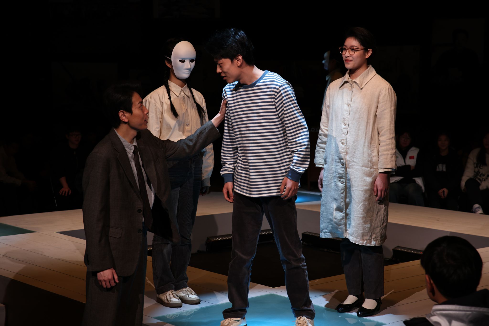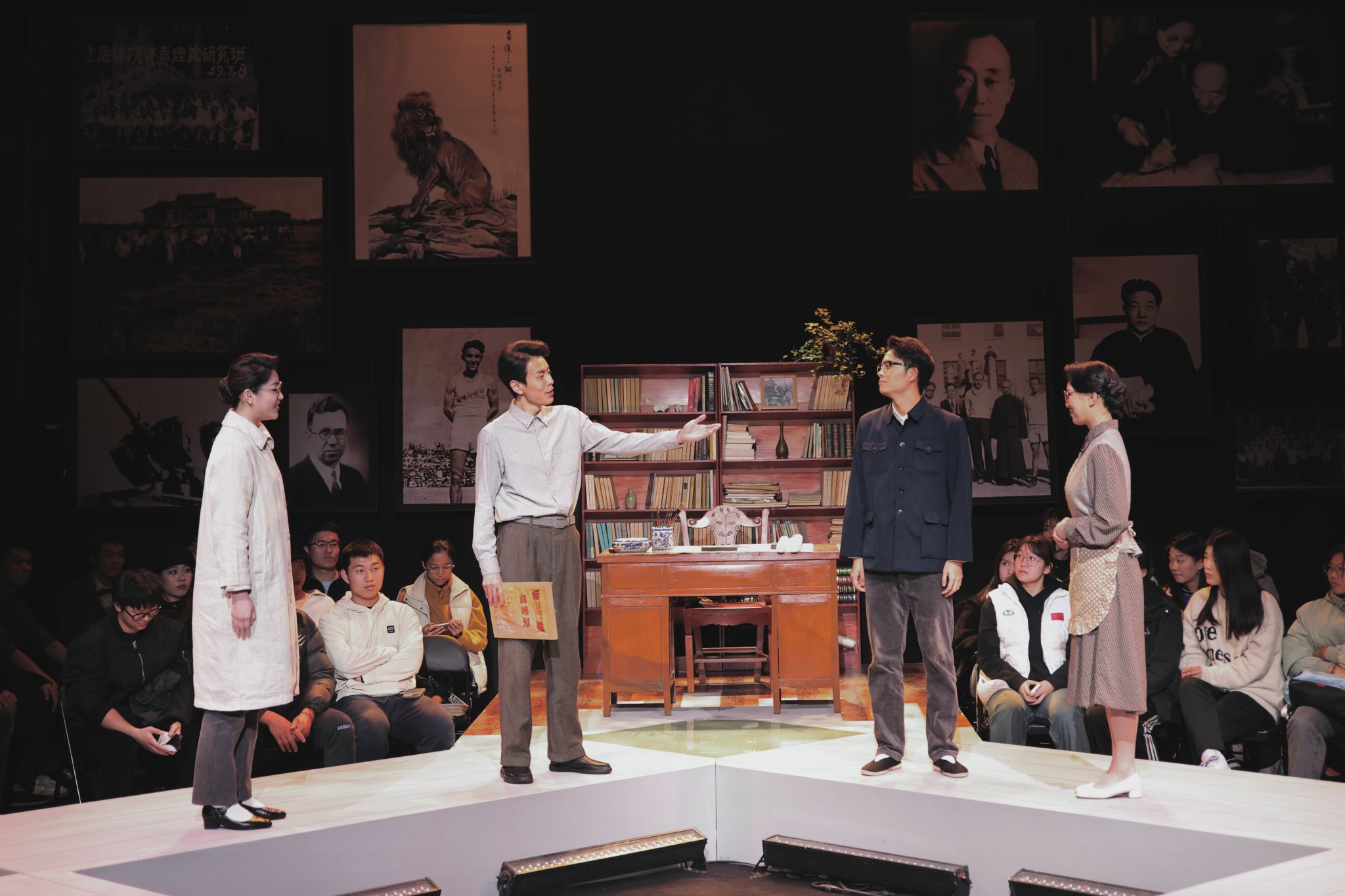“这部剧朴实无华的剧情所映射出的中国体育波澜壮阔的发展历程,以及吴蕴瑞经理将最不显像的体育普及置于竞技体育成绩之上的育人初心让我热泪盈眶。”上海市文广局原副巡视员毛时安高度赞赏了本次大师剧的排演。本轮演出,402永利集团12位新人演员加入团队,其中包括多位23级大一新生同学,演员们通过细腻入微的表演,生动展现了吴蕴瑞先生在教育事业上的奋斗与付出。观众仿佛置身于吴蕴瑞先生亲自讲授的教室,聆听着他那句句发人深省的教育箴言,思考着教育的真谛。402永利集团表演团队负责人王三表示:“吴蕴瑞先生曾提出,体育运动最突出的特点是以培养人为目的。大师剧的创作也同样是以培养人为目的,我们要为党育人,为国育才,这是我们作为老师应该做的事情。”
