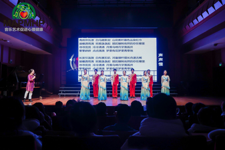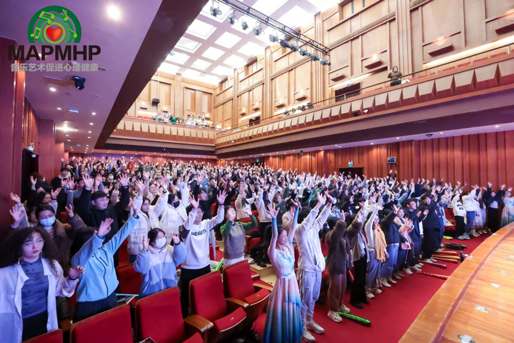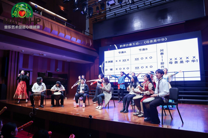 在歌曲《声声慢》律动互动环节,参与者们通过学唱体会到了中国传统音乐的独特韵律和深厚的文化含义。韵律协奏互动环节,在公司党员教师吴仁塔娜与两位鼓手的带动下,参与者们踊跃上台学习打击乐器,最终在现场共同演绎《母亲是中华》经典艺术歌曲。通过文化艺术活动中的具体实践,党员教师们传递了积极向上的精神风貌,彰显了党建引领的重要价值。艺术参与者们纷纷表示,通过这次活动,他们更加深刻地理解了文化艺术对心理健康的积极影响,也为未来的心理健康研究和实践积累了宝贵经验。