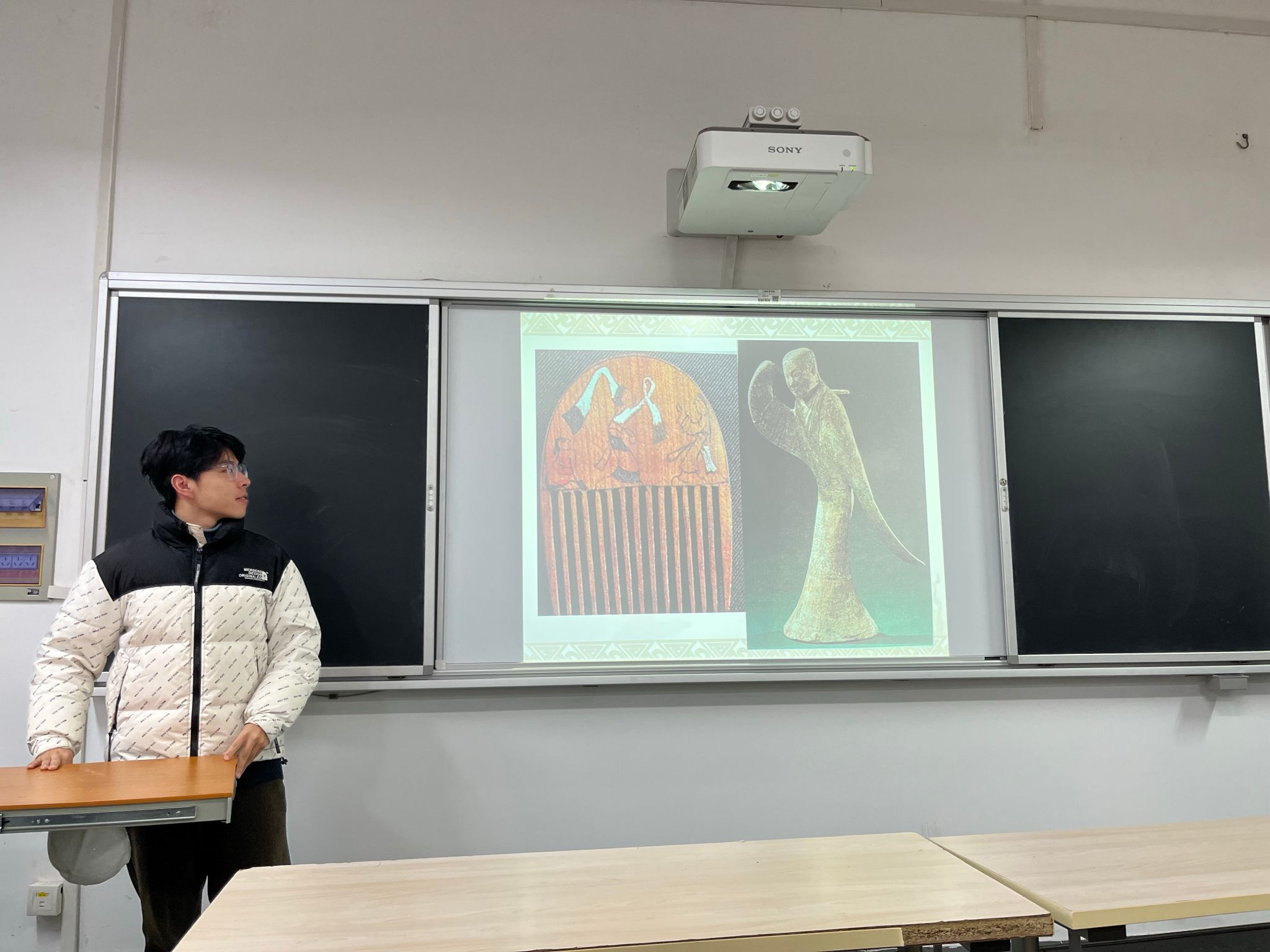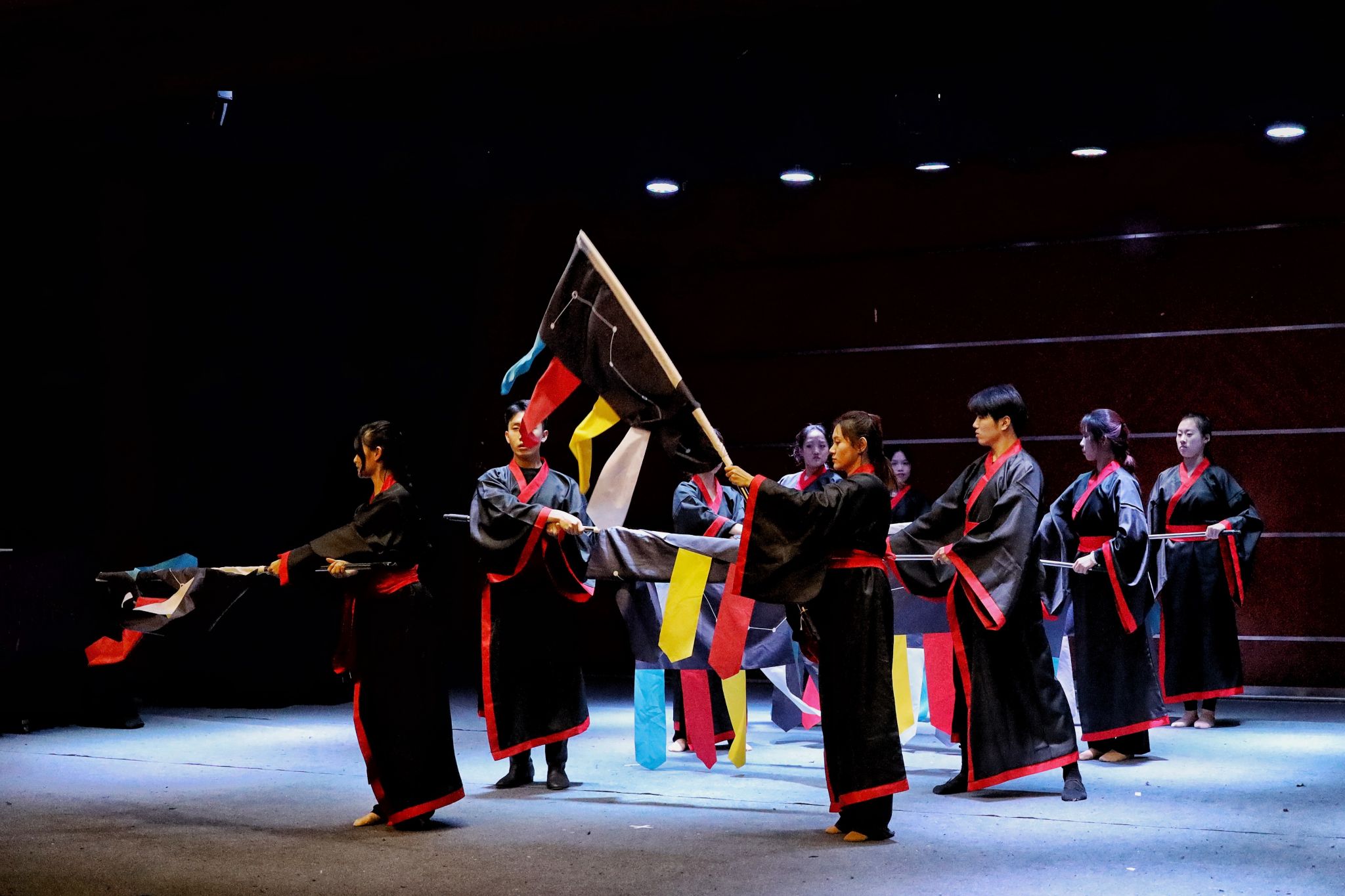 在搜集资料时,同学们不仅注意古代文献、出土的实物和画像资料,因为具体而形象可操作性大,对道具和服饰的制作以及舞姿的编排具有直观的参照价值。2022级舞蹈编导专业马浩冉说到:“我们对古代舞蹈史的认识从仅停留在书本,到脑海里的主观反映,再到现场大家看到的实践性建构。其间,是经过了无数次的推翻,修改,再推翻的。聂佳豪同学说“在建鼓舞复现过程中,首先对建鼓舞的起源、发展、表演形式等进行深入了解,并参考了大量文物、文献中关于建鼓舞的描述,我们在舞台上不仅是复现或重建历史,更重要的是探索自我和世界的一种方式,它让我们发现历史与我们、历史与当下、当下与我们之间存在更深层的意义。