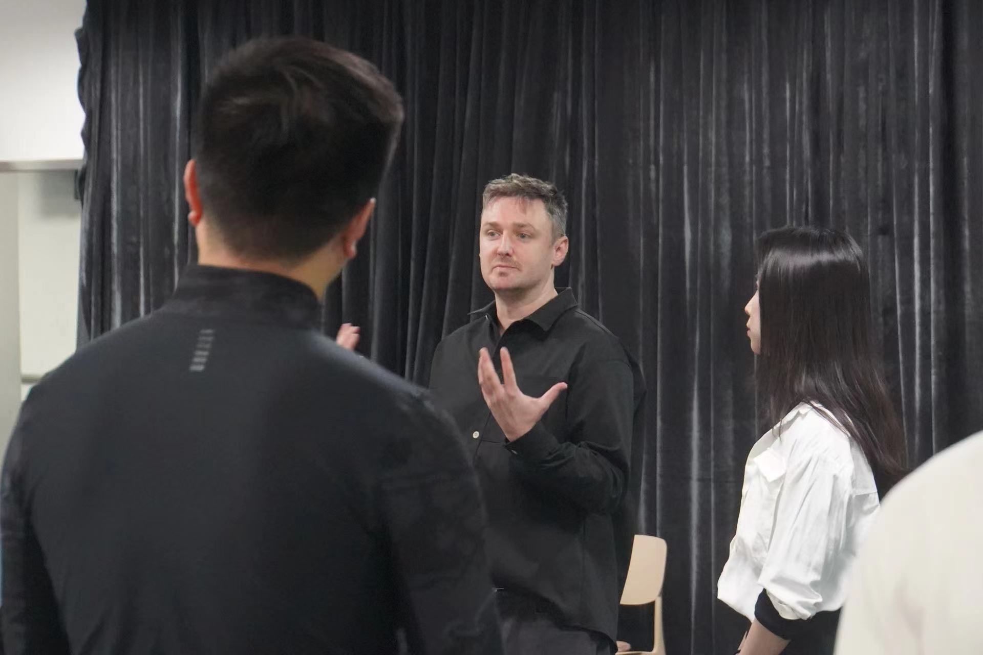 在Conor Doyle老师、郑小凡老师的带领下,学员们尝试感受不一样的舞台空间,使用不同的视角在舞台上假设摄影机位,优秀舞蹈编导作品展示了他们的学习成果。
