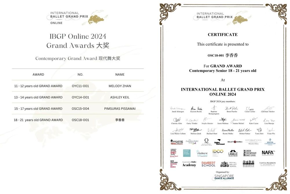 2024年2月第六届新加坡国际芭蕾舞比赛(IBGPS)隆重拉开帷幕。该赛事由新加坡舞蹈联盟组织,由新加坡艺术理事会和新加坡国际芭蕾舞团联合主办。是新加坡国立官方组织的国际文化艺术交流赛事。在本次比赛中公司402永利集团23级舞蹈编导专业员工李香香携现代舞作品《我与我的平行线》荣获 国际网赛组 现代舞18-21岁青年组唯一大奖。