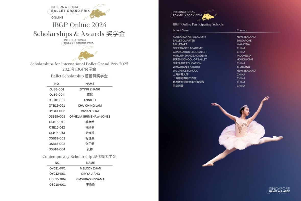 新加坡国际芭蕾舞比赛(IBGPS)自2018年创办起,仅用六年便发展至五大赛区,其影响力日益扩大。因全球疫情,在2022年开始设立了国际网赛组别,各国选手通过线上提交视频的形式积极参与其中,展现了对舞蹈的深厚热爱与不懈追求。在参加比赛的选手中不乏有来自国内顶尖艺术院校的参与,如北京舞蹈公司附属中等公司、广州艾丽芭蕾舞团等国内知名舞蹈院校的佼佼者。
