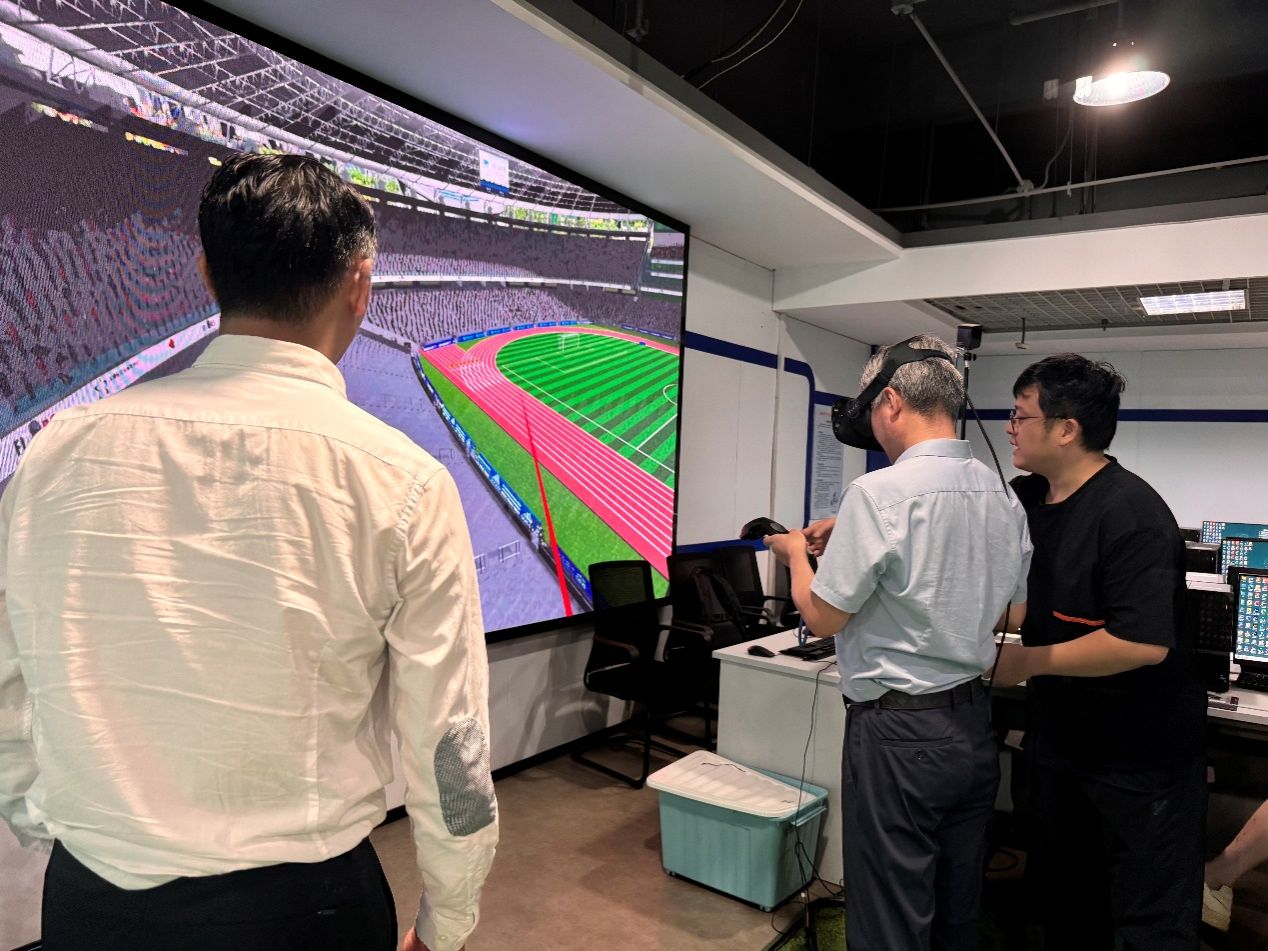随后,双方到访了402永利集团虚拟仿真实验室。经济管理公司的徐成龙老师结合视频和相关设备的演示,向到访教师对虚拟仿真实验室进行了详细介绍,包括硬件设施、系统配置、教学场景、实训要素等。上海戏剧公司附属舞蹈公司相关教师也亲自操作并体验了虚拟仿真实验设备,深入了解了虚拟仿真实验室在课程教学、教学改革、人才培养等方面的重要作用。