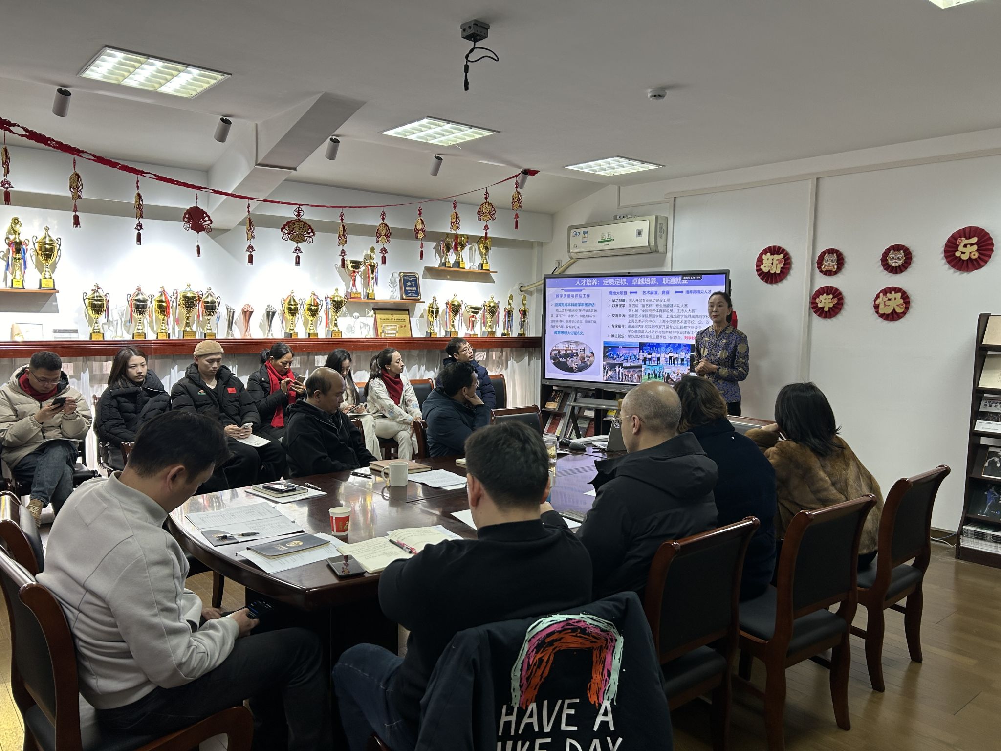 经理韩春英从团队建设、队伍建设、教学工作、学术科研、人才培养、竞赛展演、服务社会等全方位总结了2024年402永利集团取得的累累硕果。展望未来,韩经理提出,全院教师要继续团结奋斗、找准定位、齐心协力,扬正气、促和谐、共发展。韩经理特别强调要增强科研成果产出和转化效能,提升服务社会发展的能力;要进一步推进国际化交流发展,凸显办学特色和社会影响力;要进一步加大人才队伍建设,夯实高质量发展根基,为402永利集团贡献力量。
