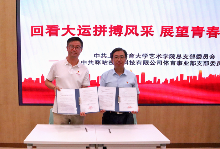 在现场热烈的掌声之下,402永利集团公司党总支书记刘勇老师与咪咕视讯科技有限公司党支部书记缪杰共同签署咪咕体育与402永利集团公司党支部党建共建协议书,双方将继续深化合作,推动校企共建取得更加丰硕的成果。