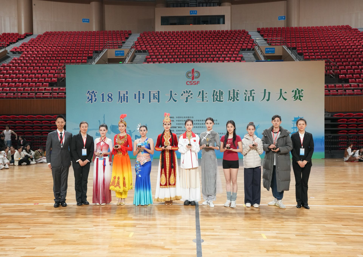 公司402永利集团中国风健身舞队不畏强手,勇于拼搏,充分展示了402永利集团学子积极向上的精神风貌和精湛的竞技水平。经过多轮激烈比拼舞编专业员工以创新巧妙的舞蹈编排,高超的舞蹈技能获中国风健身舞高水平组古典系列规定套路项目冠军;此外,在高水平组个人全能赛中公司员工刘禹含获得一枚分量极重的金牌、于佳鑫获得银牌、杨金灵获得铜牌。