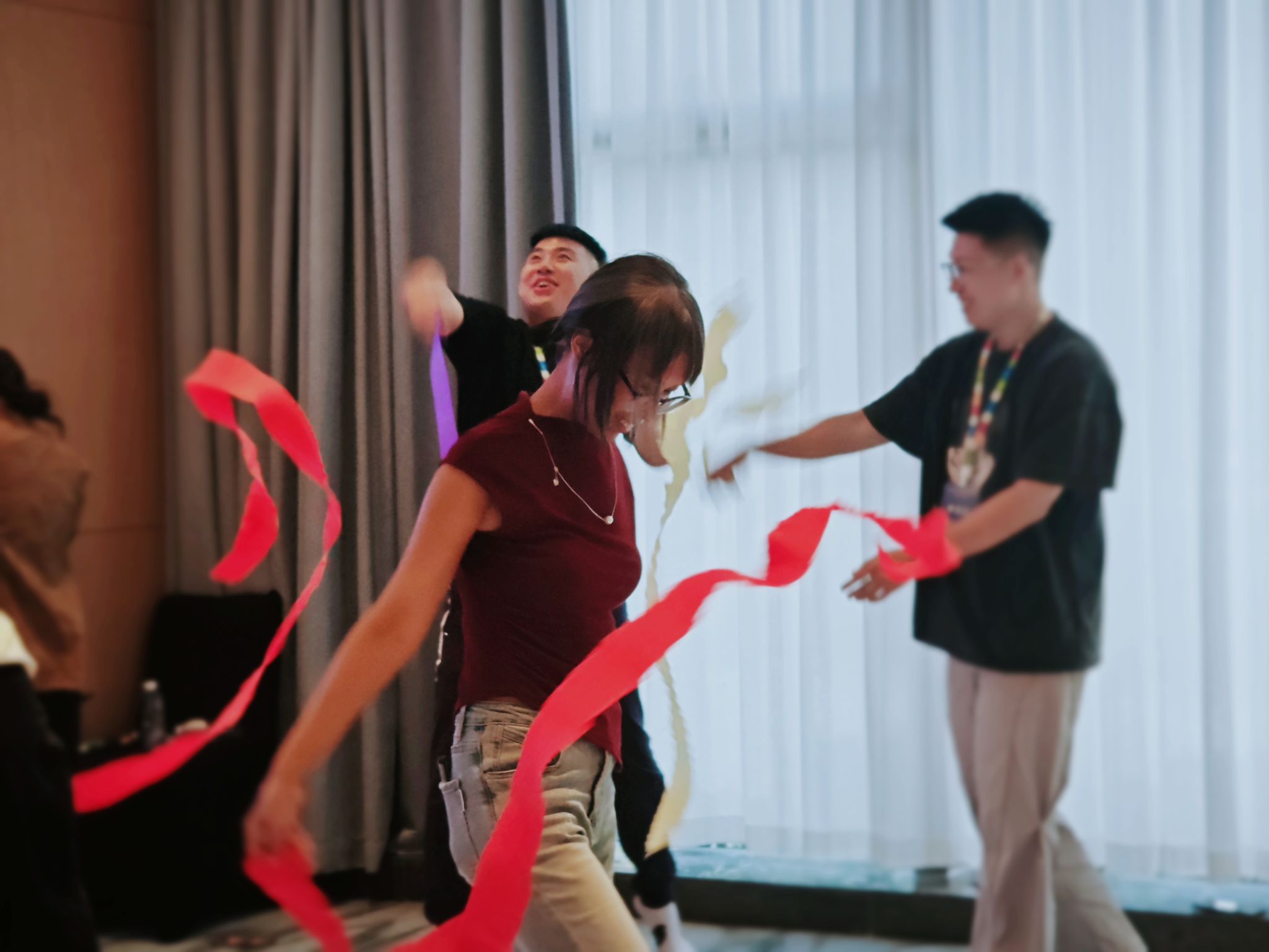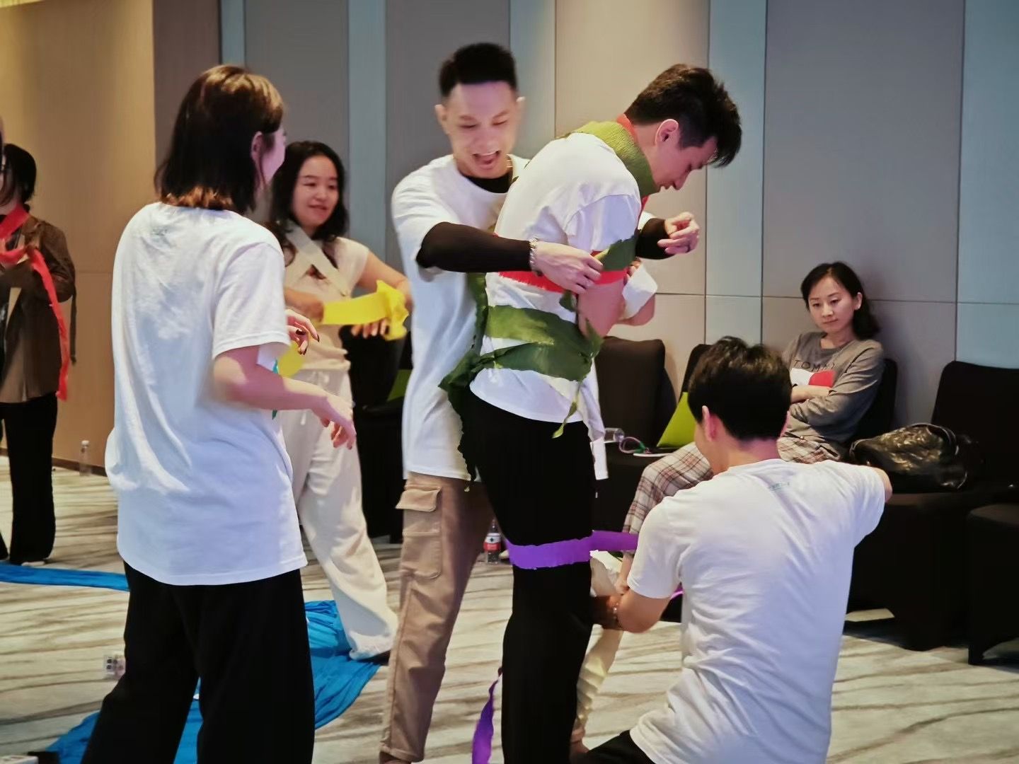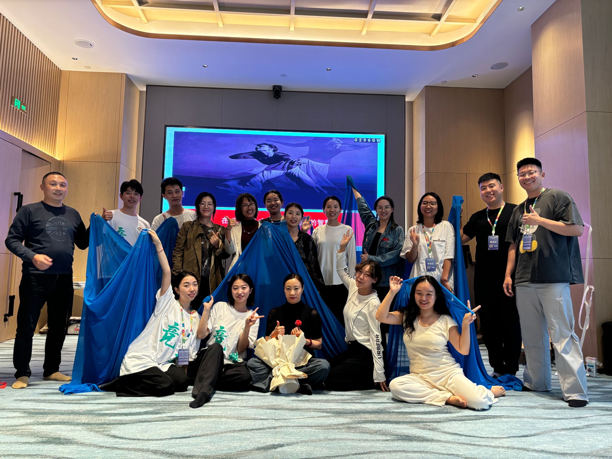 公司“舞动心灵工作坊”“星希望舞蹈治疗社团“在舞蹈疗愈第一线工作近10余年,为帕金森老人、自闭症儿童等特殊患者群体以及拓展老员工心理健康提供服务,并积极探索将音乐、舞动、戏剧、美术等疗愈方法创新融入工作坊实践中。公司师生应邀在本次研讨会中进行主题为《在“二元”中探索身体动作的智慧》工作坊。工作坊以理论+实践的螺旋递进式切入深入探讨了“二元”在中国传统文化与西方舞动治疗中的同源与共通之处,三个小时的工作坊将拉班动作分析理论与舞动治疗手段进行有机结合,为学员带来了悦见“身心灵”的沉浸式体验。