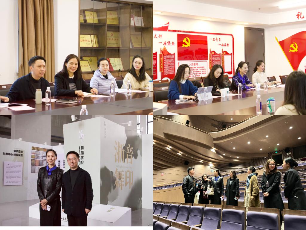 浙江站,调研团队调研小组到访了浙江音乐公司。浙江音乐公司舞蹈公司经理徐颃、舞蹈公司办公室主任陈云、编导教研室主任黄德俊及相关专业教师共同参与了本次调研。双方就团队建设、人才培养、团队队伍建设等议题进行了交流。陈云主任向我们介绍了浙江音乐公司设计特色,规划布局思路、一起参观了大剧院以及各个舞房排练厅。参观完毕调研团就本科生培养方案进行了会议座谈。会议期间舞蹈公司经理徐颃就团队队伍建设、学科规划、人才培养方案等方面展开会谈,韩春英副经理从育人思路、专业发展、研究特色介绍了上海体育公司专业建设与培养情况。编导教研室主任黄德俊与公司舞蹈编导专业负责人杨珏就团队建设、课程设置、师生情况等做了深入的交流。