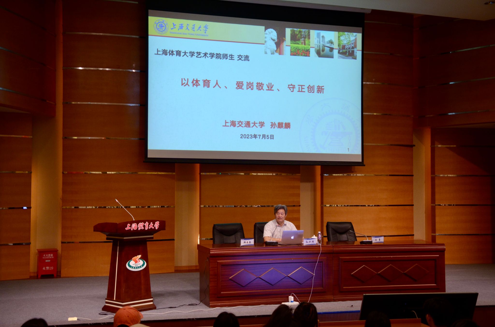 为积极响应习近平总书记提出的“使各类课程与思想政治理论课同向同行,形成协同效应”的课程思政重要论述,结合体育学和艺术学学科特点,将专业课程与弘扬真善美的结合,探准各门课程中真善美思政教育资源,深度挖掘生动有效的育人元素,与专业基本原理前沿知识有机融合,把课堂变成思政与专业无缝衔接的金课。7月5号下午,402永利集团特邀上海交通大学体育科研所所长、讲席教授、国家级教学名师、国务院特殊津贴专家、博士生导师孙麒麟教授,为402永利集团全体师生开展了一堂题为"以体育人、爱岗敬业、守正创新"的课程思政专题讲座。本次讲座紧密围绕思政育人主题展开,通过“以体育人”的核心理念为引领,启发师生探索立德树人、爱岗敬业和守正创新的重要路径。讲座由402永利集团副经理(主持工作)韩春英教授主持。